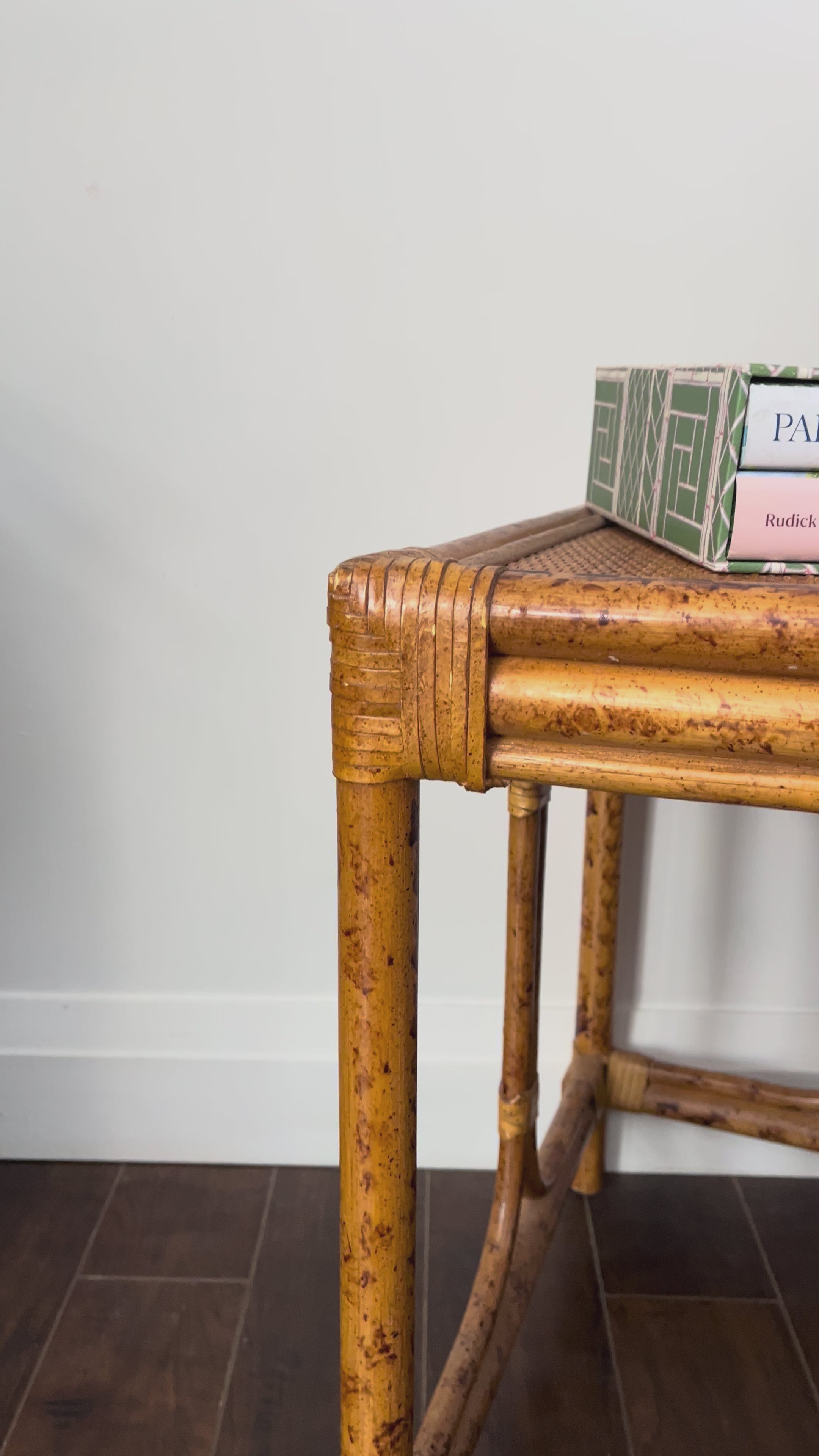 Burnt bamboo offers dimension all around this vintage piece, highliting its tubular structure along the way.
